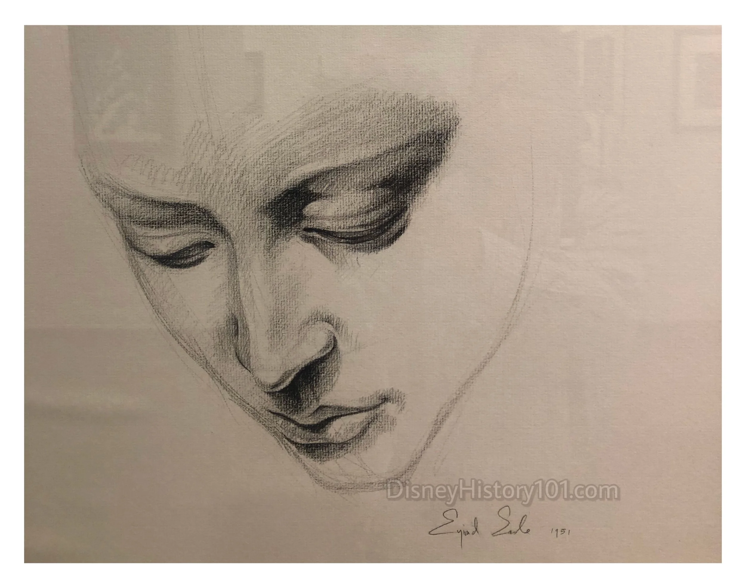 Eyvind Earle (1915-1974) grew up in Hollywood after his family moved there in 1918. His father put a brush in his hand when he was just 10 years old, and by the time he was 14, Eyvind Earle was holding expositions of his work in France! Eyvind's forte was, at the time, realism. He continued to produce work of this sort, dabbling in greeting cards through the 1940's. Even through Eyvind’s sketches, it is clear that his style (for which he is most noted today), would begin to emerge during the early 1950’s.